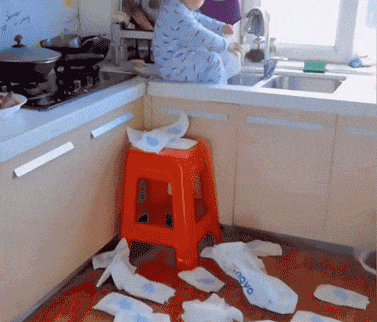 勇于探索的小朋友,没想到这尿不湿这么能装,还越来越重了