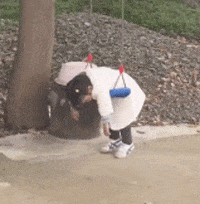 把盆子套在头上的宝宝,走路就会迷失了方向