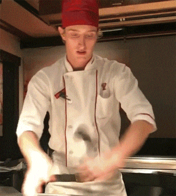 小哥想在顾客面前表演下才艺,没想到勺子摔掉了,气氛好尴尬