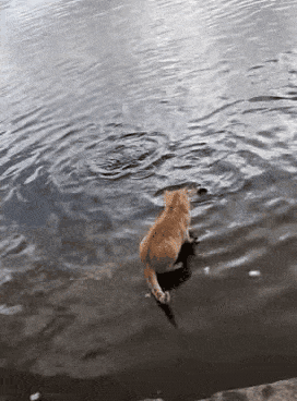 在水中守株待兔的猫咪,还真能抓到小鱼