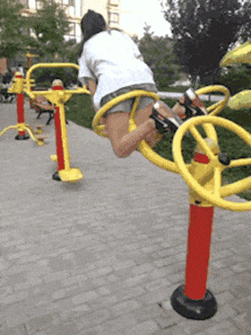 一起玩转圈圈的男女,女的玩得好,男的很狼狈