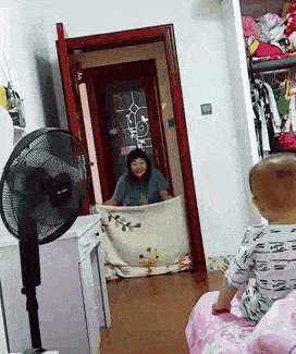 妈妈跟宝贝玩隐身魔术,逗得宝贝满屋找妈妈
