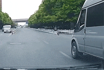 男子违法翻越护栏被后方车辆当场撞…