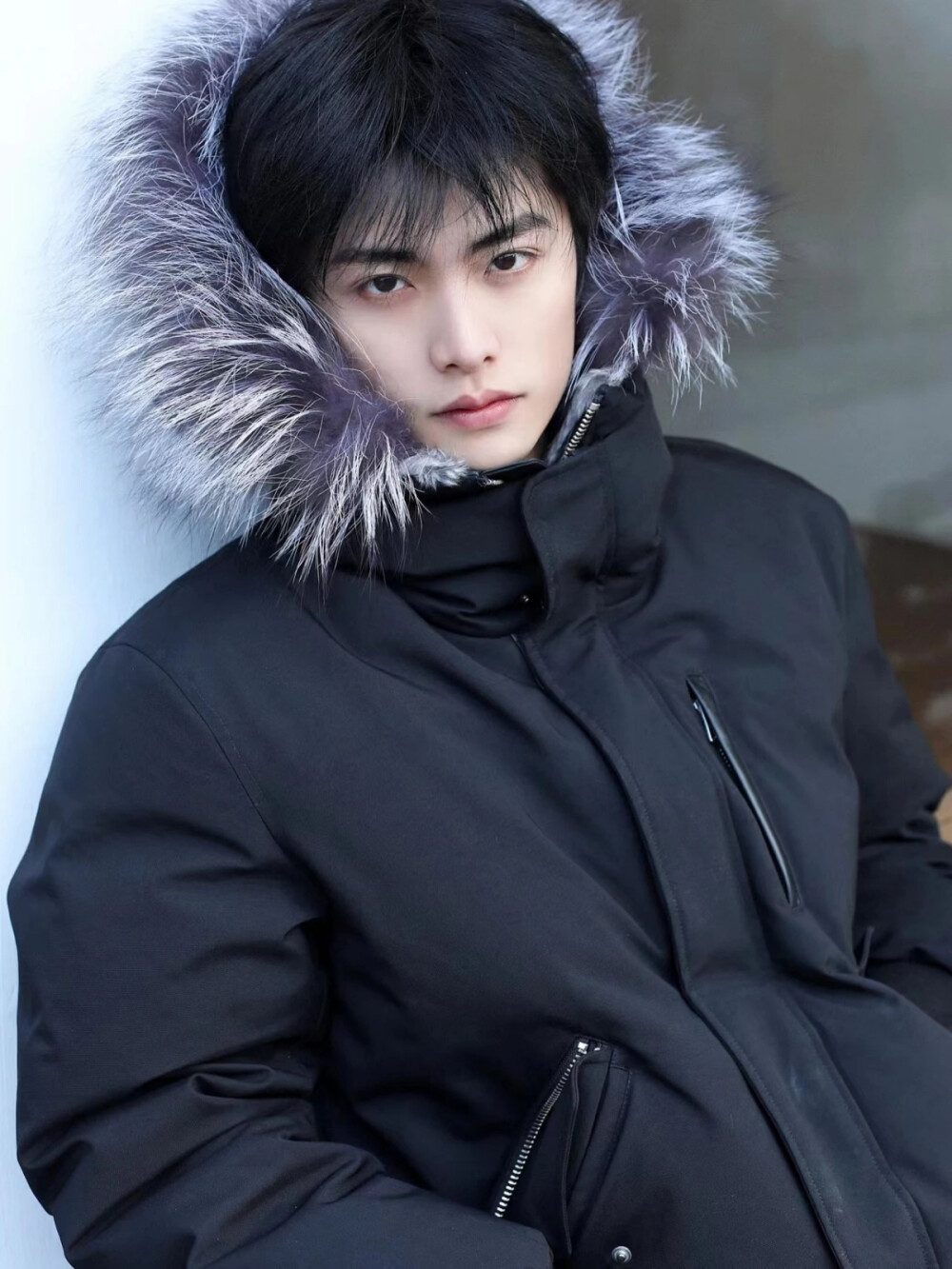 冬季穿毛领衣服的帅气男生