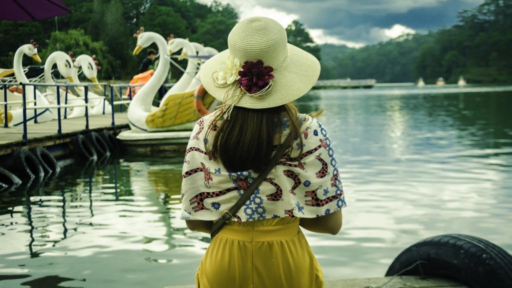 女人站在河边的孤独背影图片