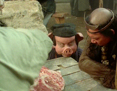 东张西望的猪八戒,应该是看到仙女了
